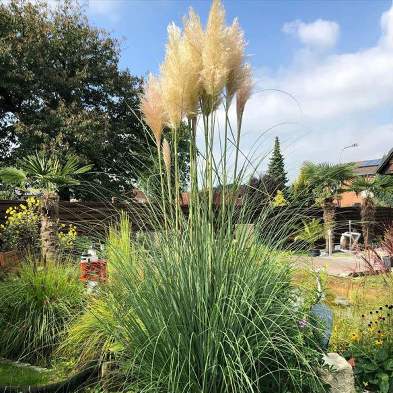 Pflanzware frisch aus unserer Gärtnerei: Hübsches Pampasgras mit grau-grüner Blattfärbung und weißen Blütenwedeln