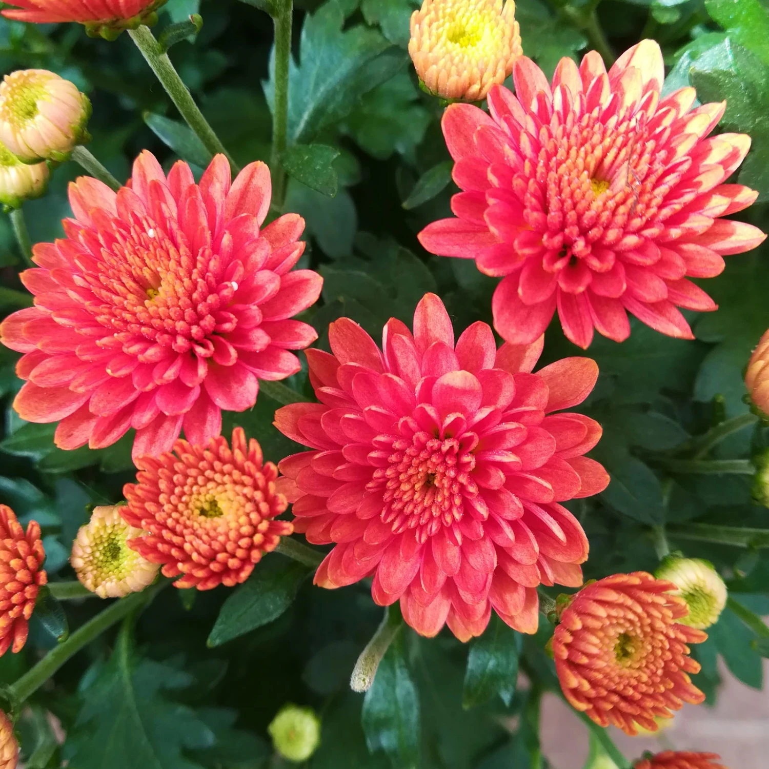 Die kleinen runden, gefüllten Korbblüten, blühen von Juli bis Oktober in einem herrlichen Bronzefarbton, Rot und in Gelb und setzen damit schöne Akzente in Ihrem Zuhause. Dem Namen multiflora (=mehrblütig) machen die Chrysanthemen alle Ehre, da sie mit einer großen Zahl an kleinen Blüte überzeugen.
