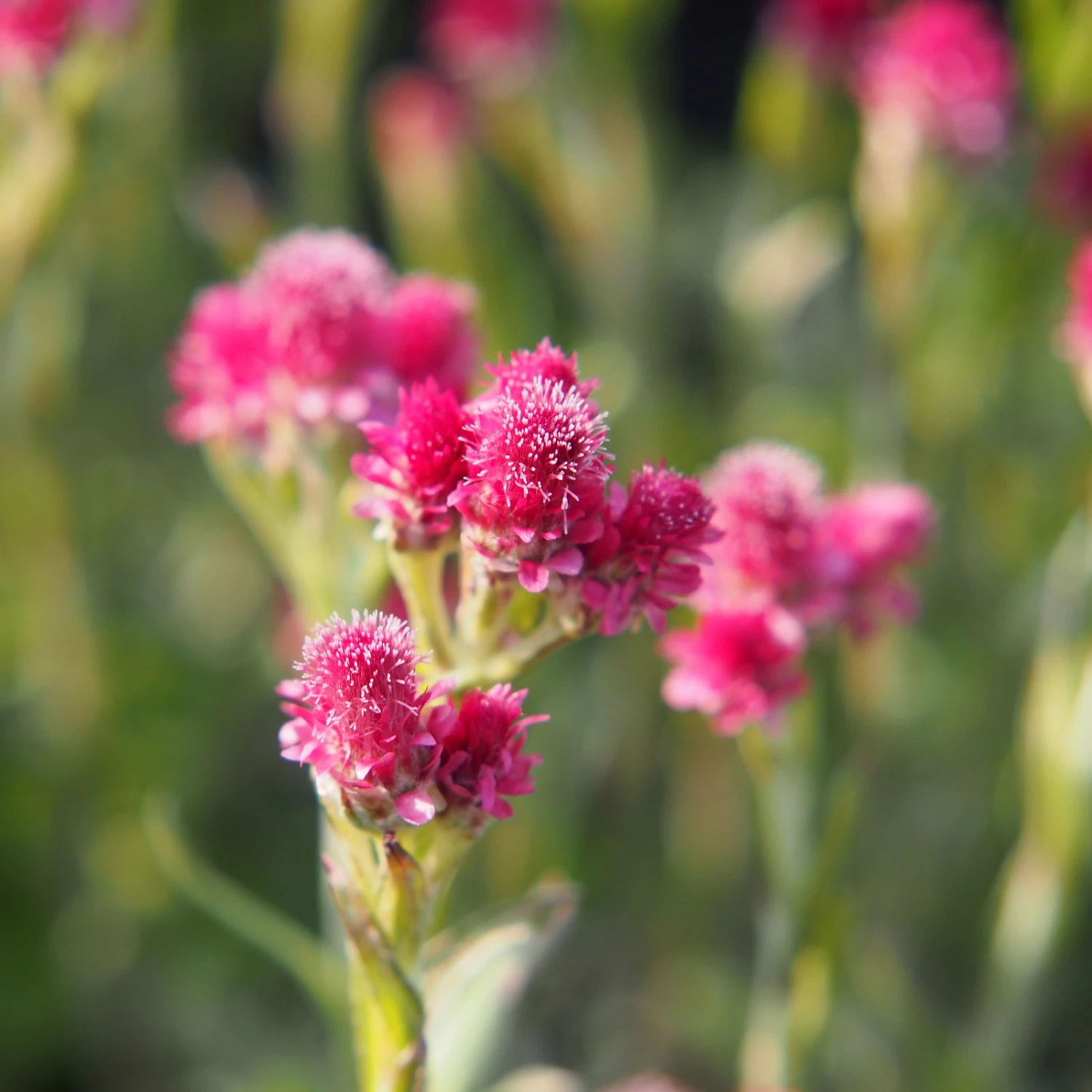Das Katzenpfötchen gehört zu den Korbblütlern. Die kleinen, roten Korbblüten stehen zu mehreren in zierlichen Blütenständen zusammen und erscheinen zwischen Mai und Juni. Sie setzen schöne Farbakzente im Garten.