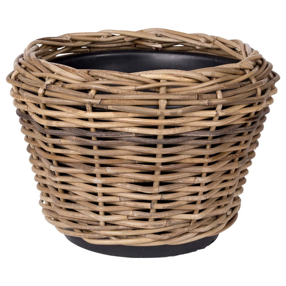 Dieses Drypot Pflanzgefäß besteht aus einem Korb ohne Boden sowie einem fest integrierten Einsatz, auf dessen Boden der Pflanztopf steht. Der Korb besteht aus grauer Weide, wodurch das Pflanzgefäß eine natürliche Oberfläche erhält. Der Kunststoffeinsatz ist zu 100% wasserdicht und verspricht durch den Kunststoffboden eine lange Haltbarkeit. Zudem sind sowohl der Kunststoffeinsatz wie auch der Weidenkorb hochwertig verarbeitet – für eine lange Freude mit dem Pflanzkübel Drypot.