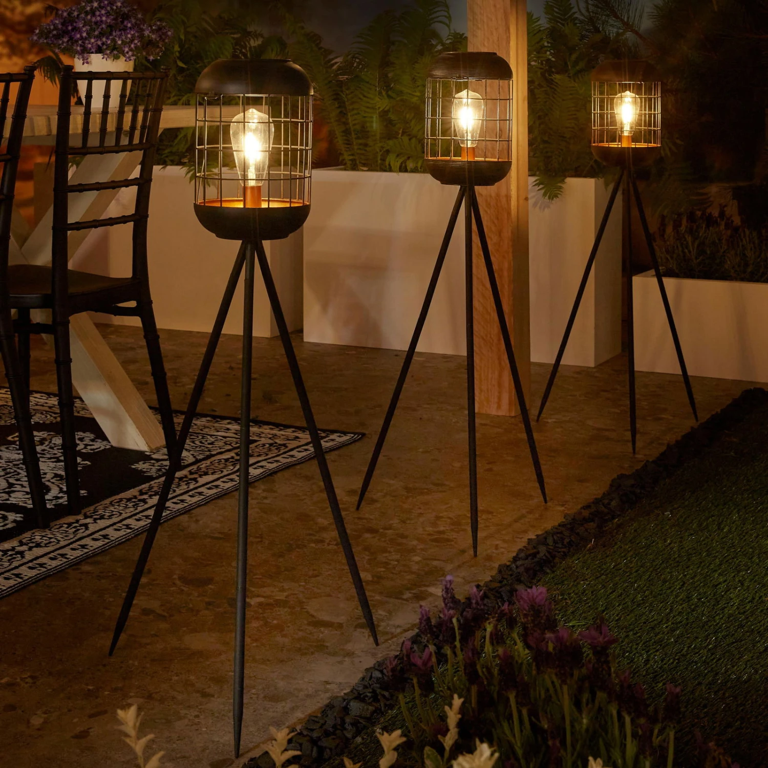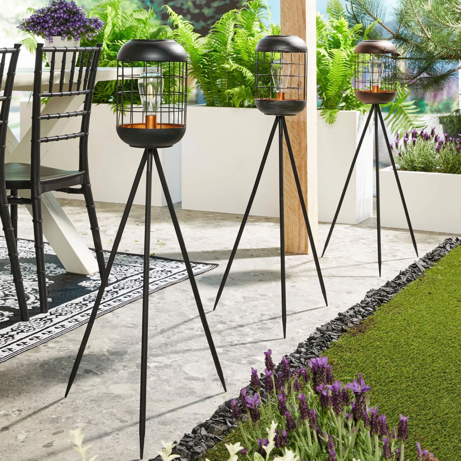 Solarlaterne ‚Lighthouse‘, Schwarz, Metall, Höhe 92 Cm