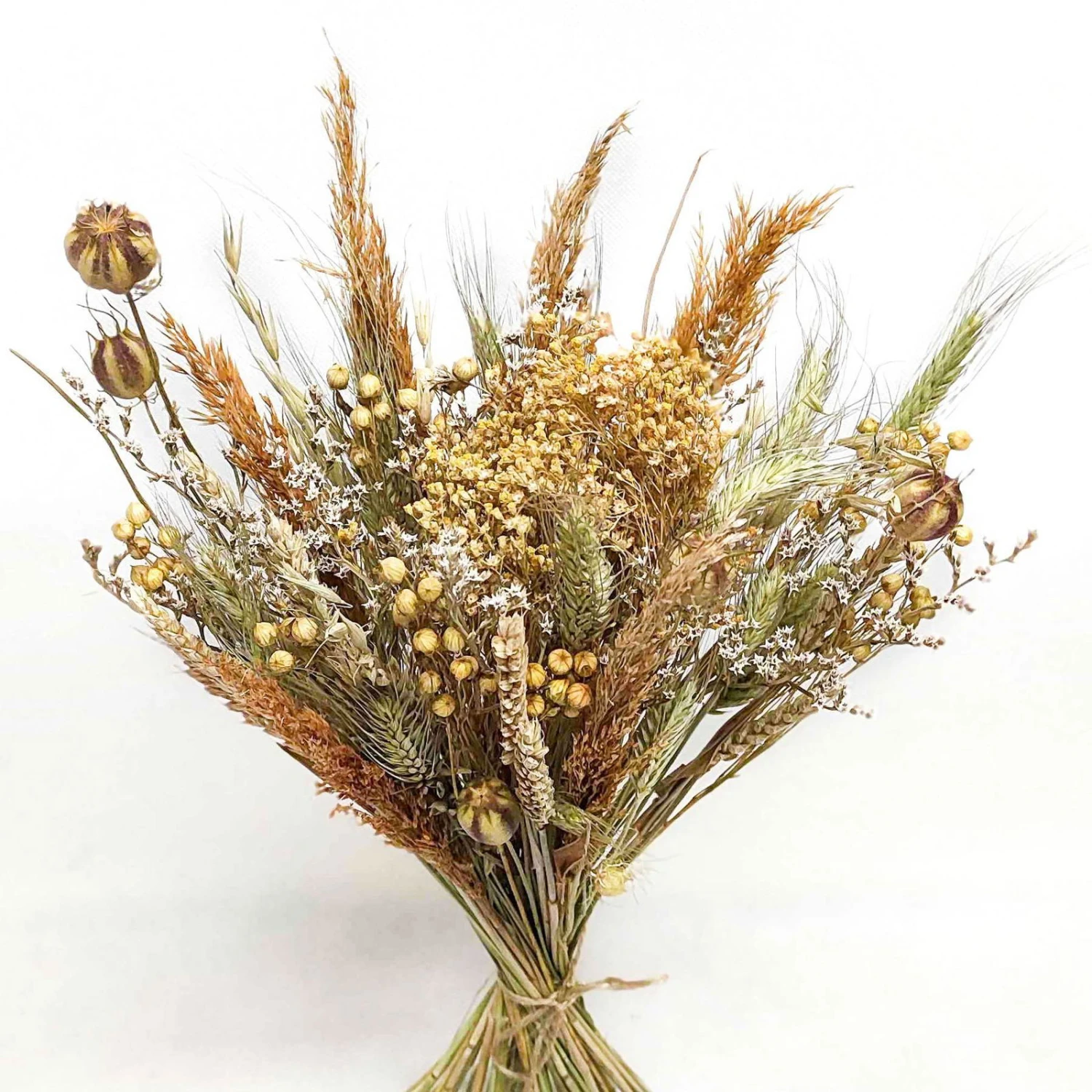 Dieses toll aufeinander abgestimmte Trockenblumen-Set zum Selberbinden überzeugt mit sanften Naturfarben. Ob zusammen oder getrennt arrangiert, das DIY-Set wertet jede Einrichtung mit filigranen Details auf. Kleiner Tipp: In einer passenden Vase kommt die Ausstrahlung Ihrer Trockenblumen noch mehr zur Geltung.