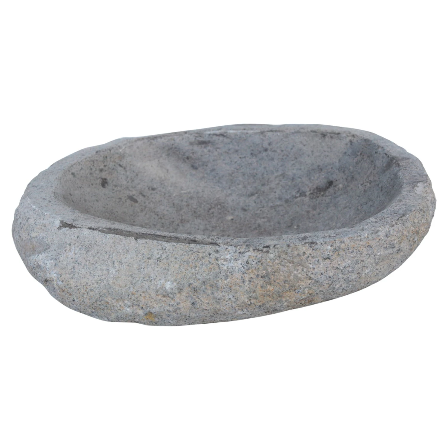 Vogeltränke ‚Fluss-Stein‘, Grau, Naturstein, 6 X 20 X 20 Cm